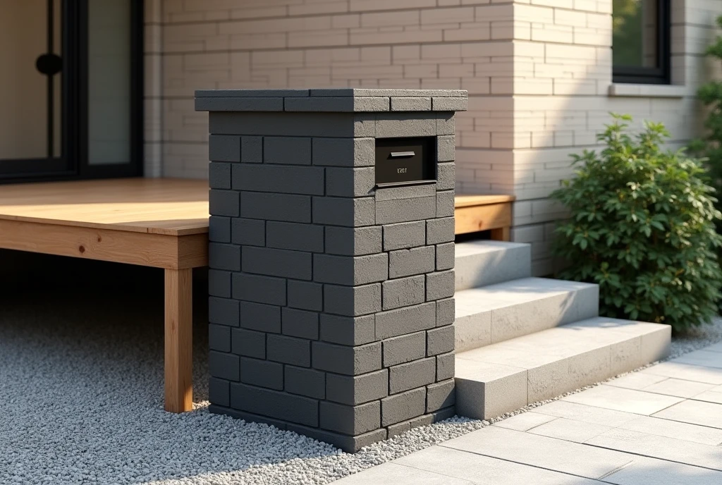 門柱本体のデザインと合わせて、表札やポスト、照明のテイストも統一すると、全体の完成度がより高くなります。